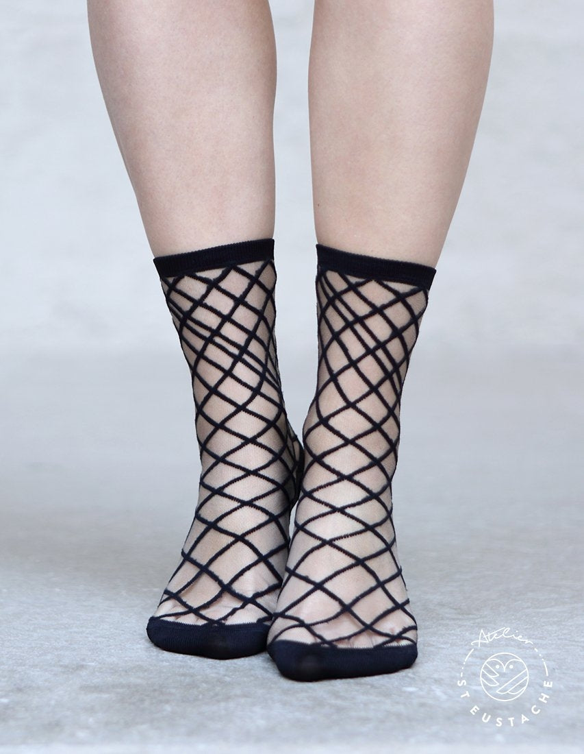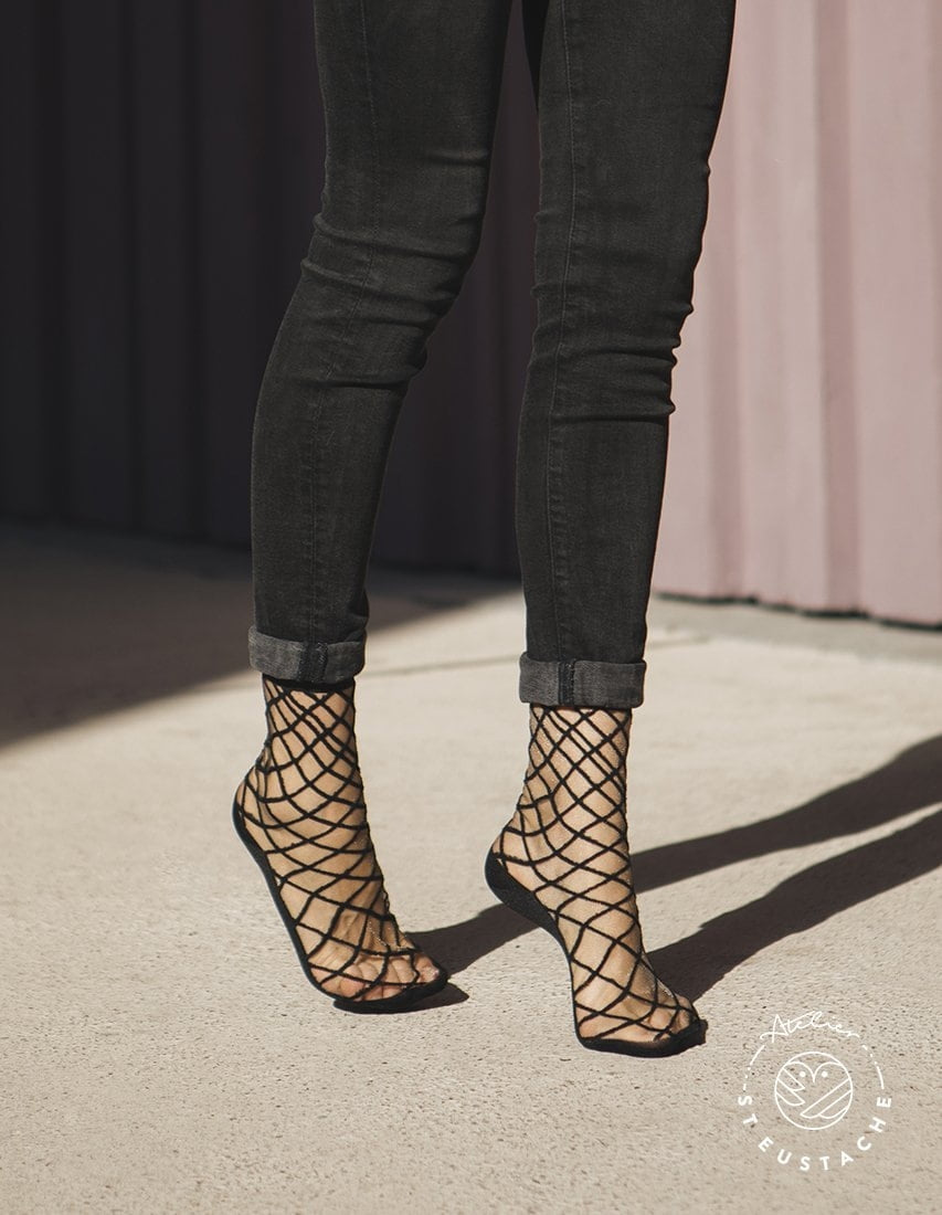 Retrouvez les chaussettes transparentes de la brillantissime Violette, créatrice parisienne de la marque St Eustache.