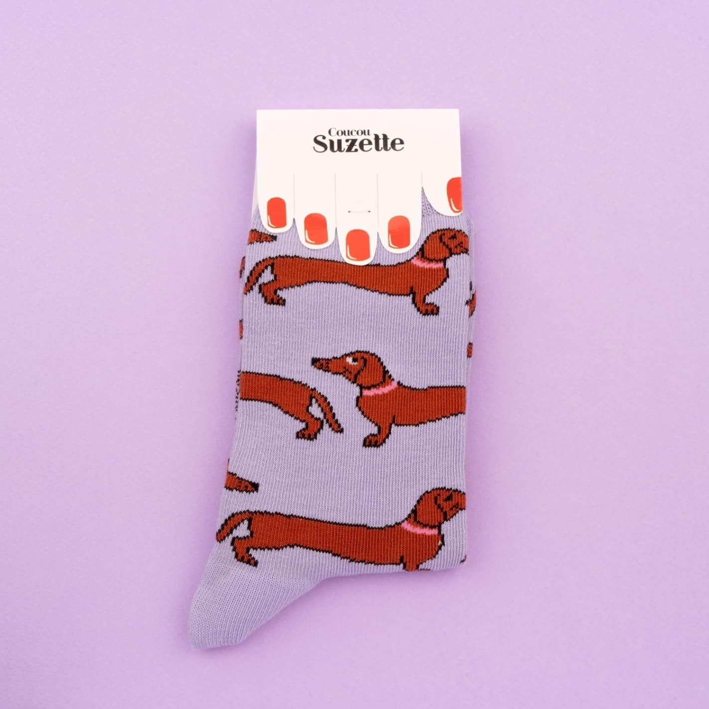 Adoptez un style fun et original avec ces chaussettes “Teckel” de la marque Coucou Suzette. Conçues en coton italien certifié OEKO-TEX®, elles offrent confort et douceur tout au long de la journée.