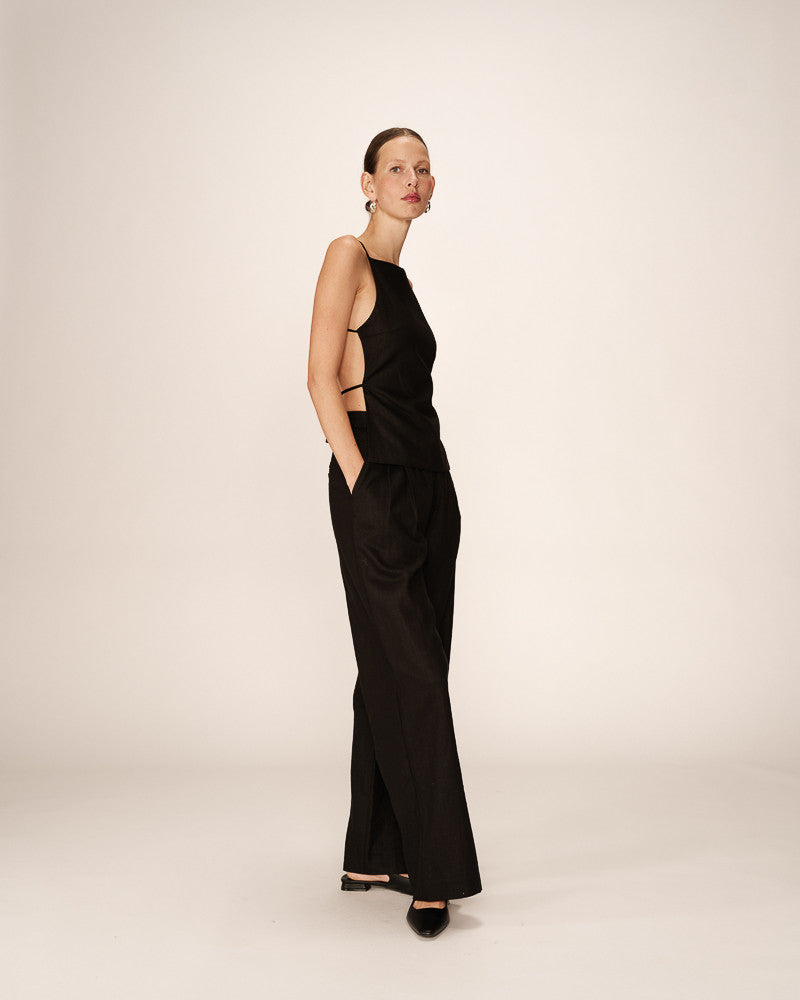 Découvrez le top Pesto de Grâce & Mila, un modèle emblématique au design minimaliste et élégant. Ce top dos nu incarne la simplicité raffinée avec ses bretelles fines réglables, son encolure carrée à l’avant, sa coupe ajustée sans manches et un lien discret à nouer dans le dos pour un rendu fluide et féminin